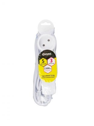 Удлинитель бытовой 3 гнезда, 5 м, 2х0.75 мм2, без заземления, пластик, белый, ФАZА, FX-03-500, 5051522