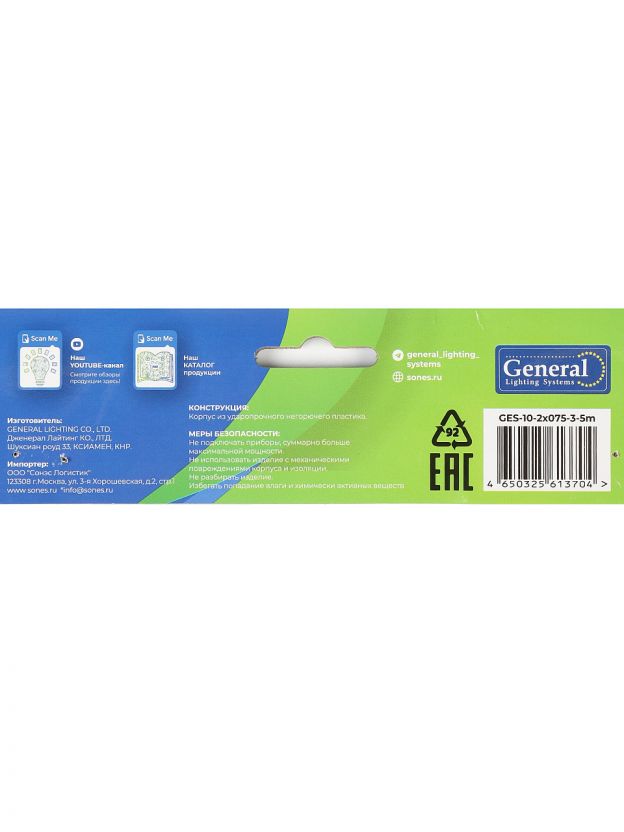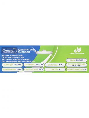 Удлинитель бытовой на 3 гнезда от General Lighting Systems — это практичный выбор для тех, кто ищет недорогой и надёжный способ подключить технику без лишних функций. Длина 5 метров позволяет удобно распределить электроприборы в комнате или на рабочем месте, а компактный корпус не занимает много места. Провод ПВС 2х0.75 мм2 обеспечивает безопасное подключение устройств суммарной мощностью до 2200 Вт, что оптимально для большинства бытовых задач.