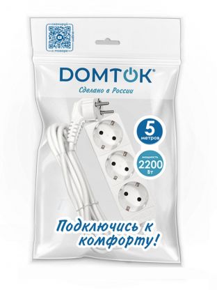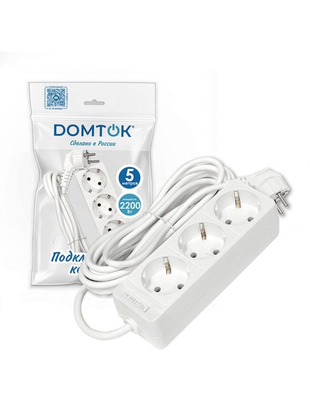 Удлинитель Domtok 2376: 3 розетки, 5 метров, с заземлением — безопасное решение для дома и дачи по выгодной цене.