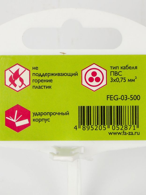 Удлинитель бытовой 3 гнезда, 5 м, ПВС, 3х0.75 мм2, с заземлением, 10 А, белый, ФАZА, FEG-03-500, 5052871