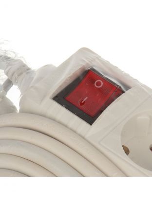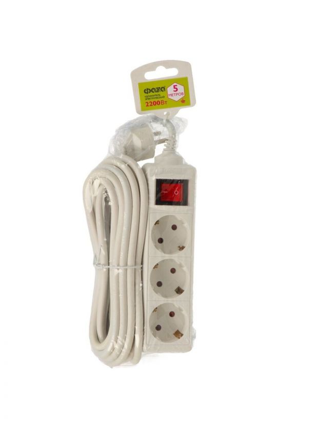 Удлинитель бытовой 3 гнезда, 5 м, ПВС, 3х0.75 мм2, с заземлением, 10 А, выключатель, пластик, белый, ФАZА, FES-03-500, 5053243
