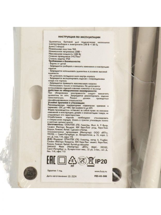 Удлинитель бытовой 3 гн, 5 м, 3х0.75 мм2, с/з, выкл, пластик, бел, ФАZА, FES-03-500, 5053243 – надежное решение для подключения техники дома или на даче. Современный дизайн, прочный пластик и наличие выключателя обеспечивают удобство и безопасность использования. Оптимальная длина кабеля позволяет свободно размещать устройства в любом помещении.
