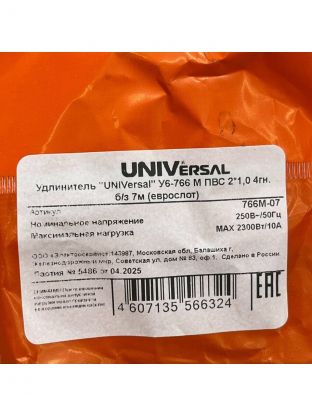 Удлинитель UNIVersal У6-766 рекомендован для использования внутри помещений (квартиры, офисные помещения) как для продолжительного многократного использования, так и для кратковременных подключений к питающей сети.