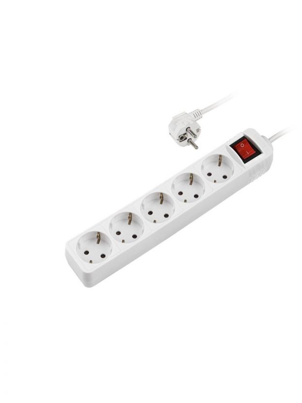 Удлинитель бытовой 5 гнезд, 3 м, 3х0.75 мм2, с заземлением, выключатель, пластик, белый, ФАZА, FES-05-300, 5053281