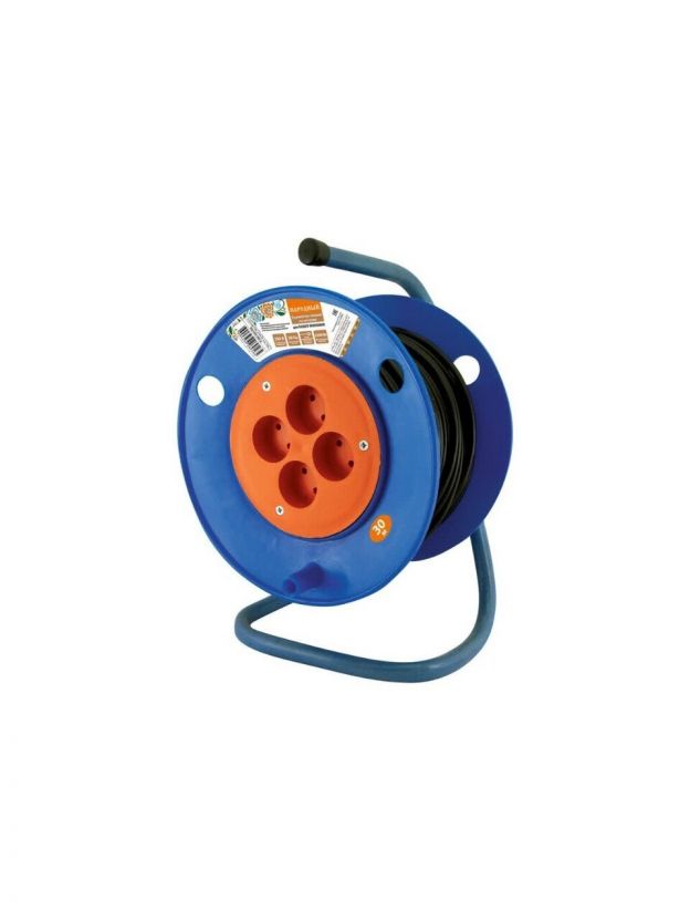 Удлинитель на катушке, 4 гнезда, 30 м, ПВС, 3х0.75 мм2, с заземлением, пластик, силовой, 2200 Вт, TDM Electric, SQ1307-0512