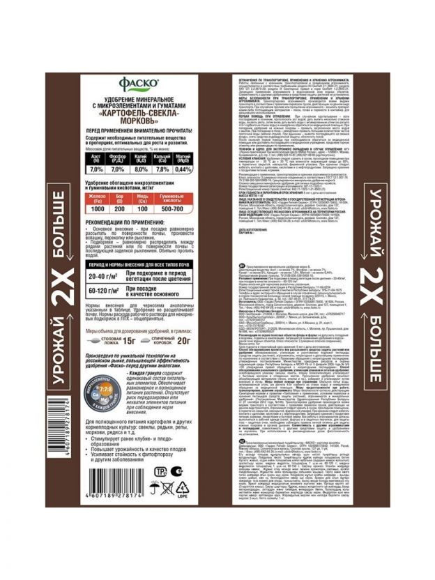 Удобрение 5М, для картофеля, минеральное, гранулы, 3 кг, Фаско