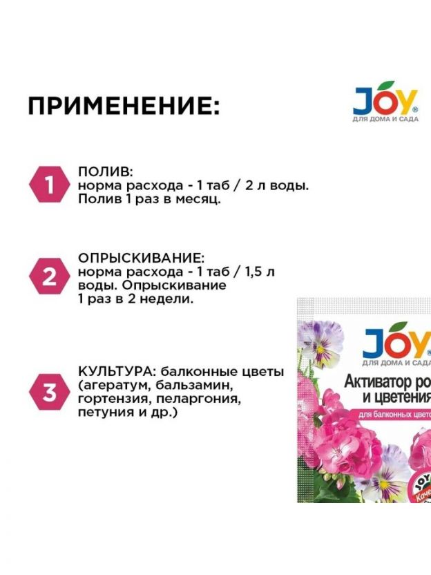 Удобрение Активатор роста и цветения, для балконных цветов, 2 шт, 50 слоев, таблетки, Joy