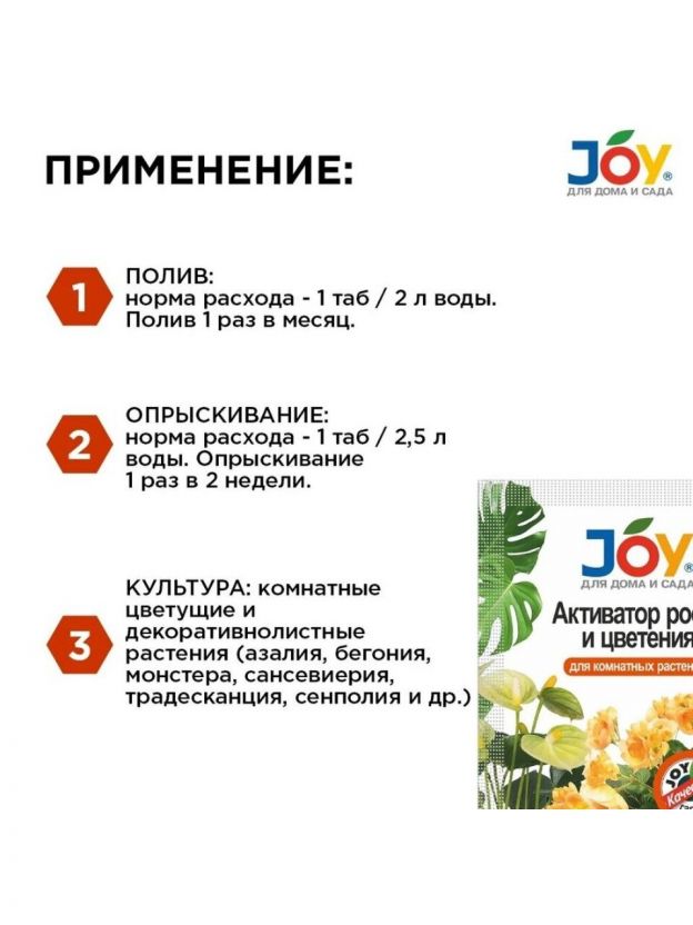 Удобрение Активатор роста и цветения, для комнатных цветов, 2 шт, 50 слоев, таблетки, Joy
