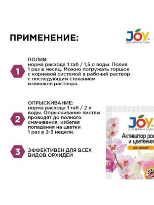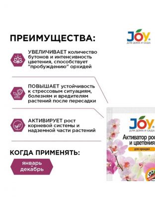Активатор роста и цветения для орхидей "JOY", предназначен для: