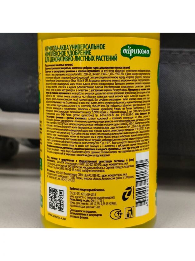 Удобрение Аква, для декоративнолистных растений, жидкость, 250 мл, Агрикола