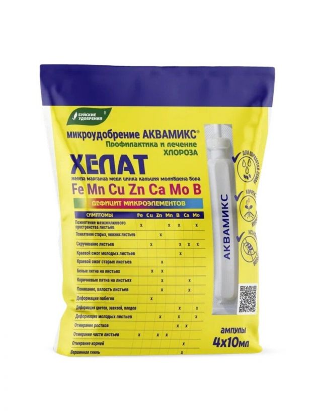 Удобрение Аквамикс, смесь хелатов, 4 шт, ампулы, 10 мл, БХЗ