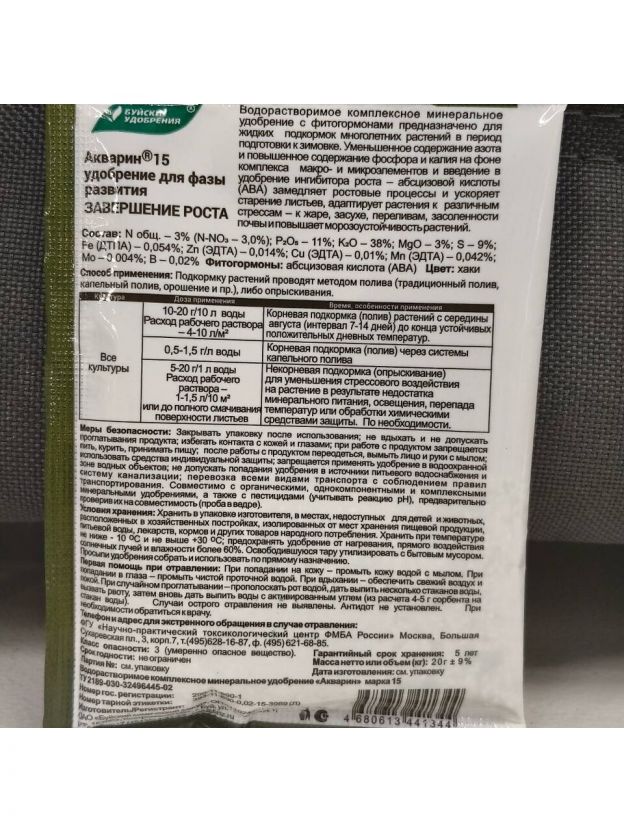 Откройте новые горизонты в уходе за растениями с удобрением Акварин, Завершение роста, ПРОФИ от Буйского химического завода. Это минеральное удобрение в форме порошка, весом 20 г, станет незаменимым помощником для завершения роста ваших растений в летний и осенний сезоны.