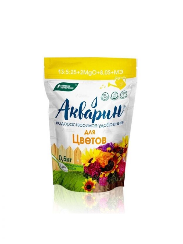 Подарите вашим цветам жизнь, полную яркости и здоровья с удобрением Акварин "Для цветов" от Буйского химического завода. Это минеральное удобрение в форме гранул создано специально для декоративно-цветущих растений и подходит для использования в любое время года: весна, лето, осень, зима. Вес упаковки составляет 500 г, что идеально для длительного использования.