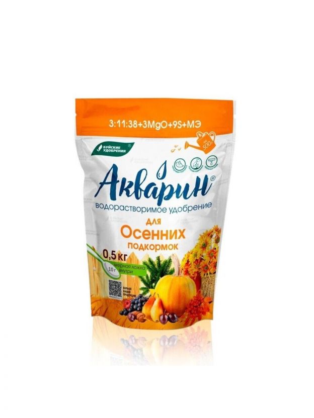 Удобрение Акварин для осенних подкормок 0,5 кг — надежное решение для укрепления растений перед зимними холодами. Минеральная формула способствует повышению морозоустойчивости и поддерживает здоровье садовых и огородных культур в осенний период. Универсальный состав подходит для различных видов растений, обеспечивая полноценное питание. Покупка этого удобрения — залог крепких и здоровых культур весной.
