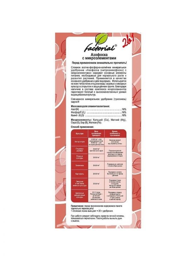 Выбор Азофоски Factorial – это уверенность в высоком урожае и здоровых растениях.
