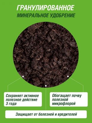 - Большой объём 10 литров в удобных гранулах — хватает на весь сезон, легко дозировать, не пылит