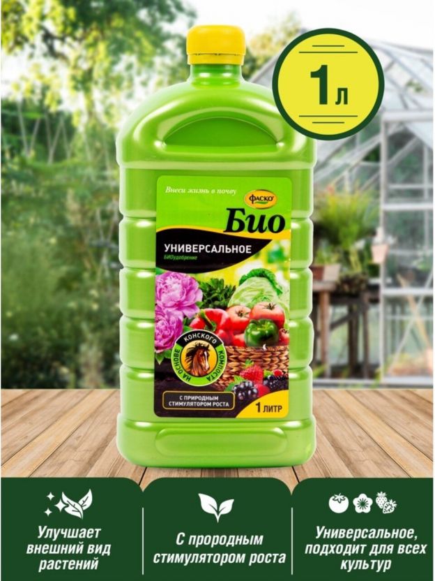 Удобрение Фаско БИО органоминеральное Универсальное 1л — ускоряет рост и повышает урожайность, подходит для всех типов растений, безопасно для экологии.