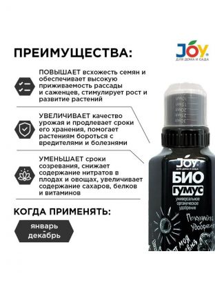 Универсальное органическое удобрение повышает всхожесть семян и обеспечивает высокую приживаемость рассады и саженцев, стимулирует рост и развитие растений, сокращает сроки созревания, снижает содержание нитратов в плодах и овощах, увеличивает количество сахаров, белков и витаминов, улучшает качество урожая и продляет сроки его хранения. Восстанавливает естественное плодородие почвы.