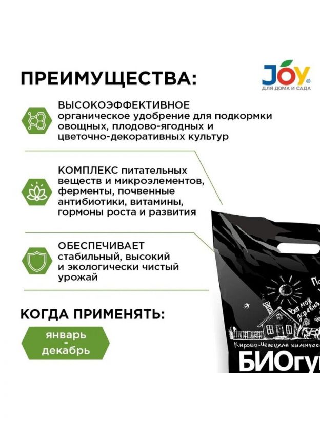 Удобрение Биогумус, сухое, органическое, 3 л, Joy