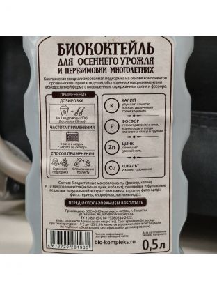 Удобрение Биококтейль, для осеннего урожая и перезимовки многолетних, ОМУ, жидкое средство, 500 мл, Био-комплекс