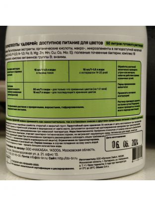 Объем — 400 мл, форма — жидкость. Органический тип, удобен для дозирования и быстрого усвоения растениями.