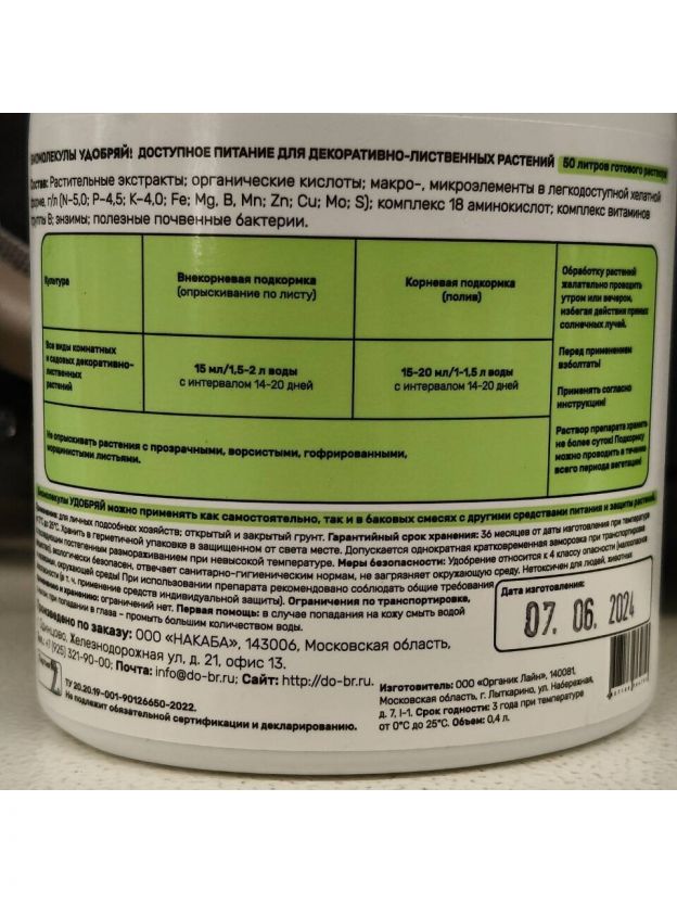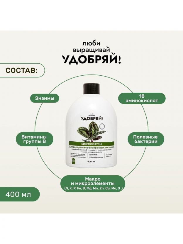Удобрение Биомолекулы, для декоративно-лиственных, 400 мл, Удобряй!
