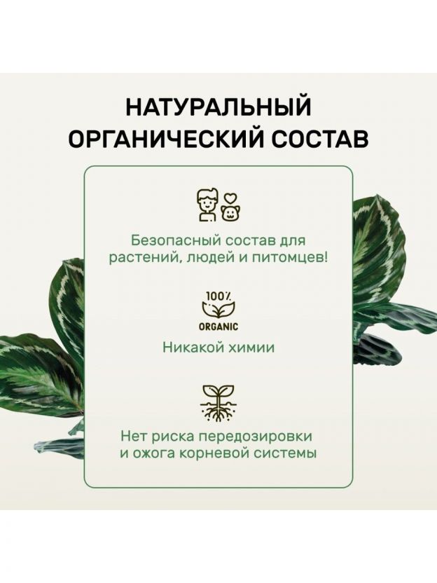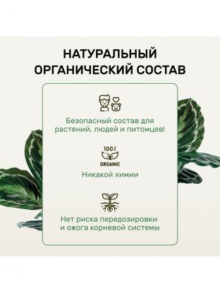 Органическая формула безопасна для корней, ускоряет рост, улучшает цвет листвы и защищает от стрессов. Экономичный объем 400 мл позволяет использовать средство для нескольких растений одновременно.