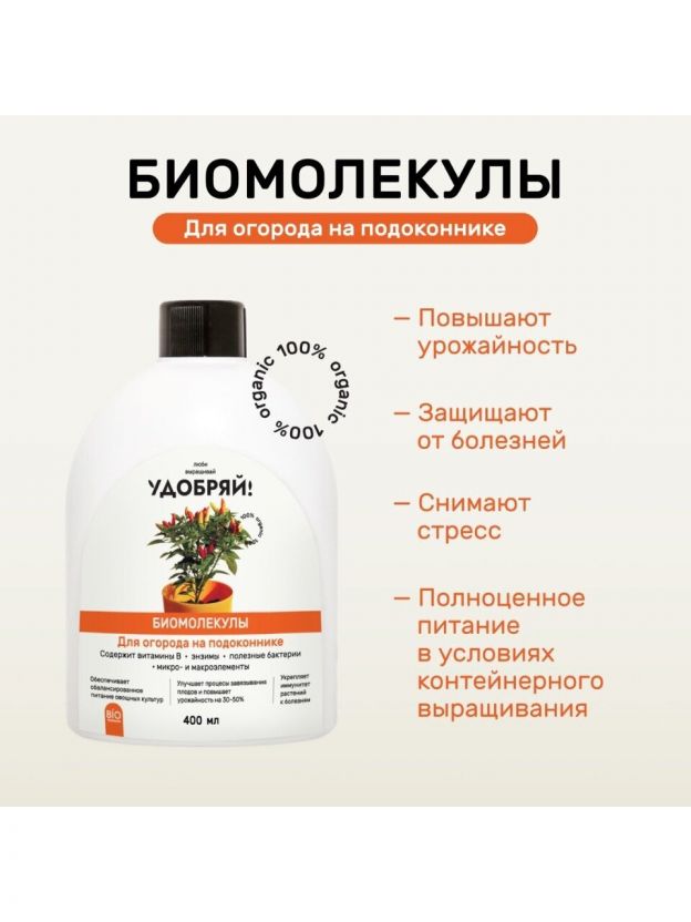 Удобрение Биомолекулы, для огорода на подоконнике, 400 мл, Удобряй!
