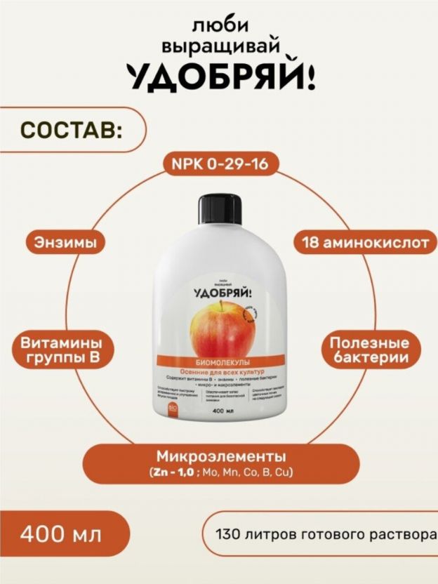 Удобрение Биомолекулы, осеннее, комплексное, 400 мл, Удобряй!
