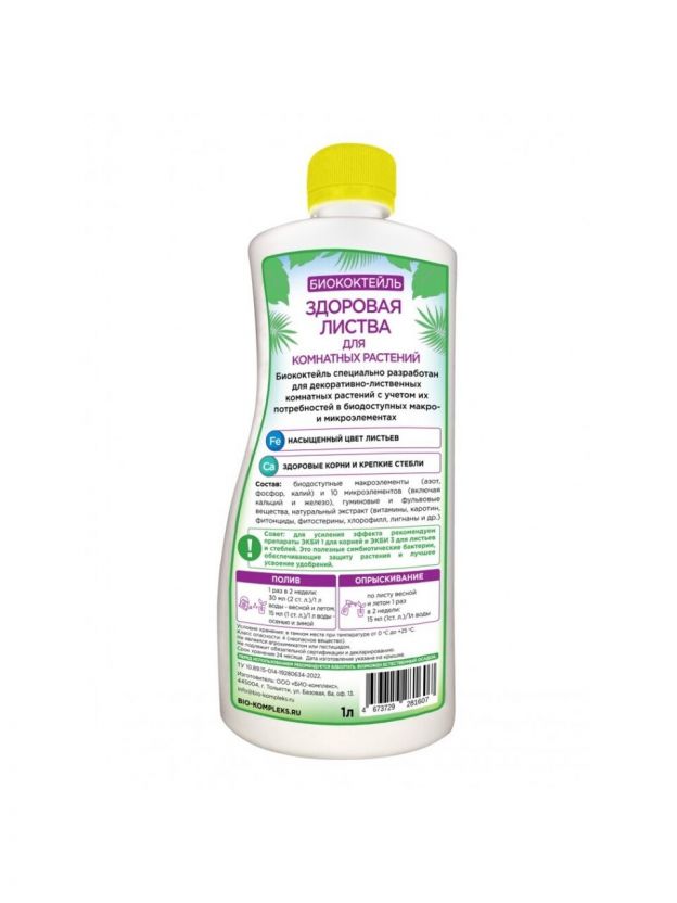 Удобрение Биоша Здоровая листва, биококтейль для комнатных растенее, органоминеральное, жидкость, 1 л, Био-комплекс