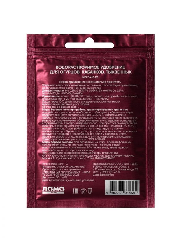 Удобрение Богатырь, для огурцов, кабачков, тыкв, 20 г, Лама Торф