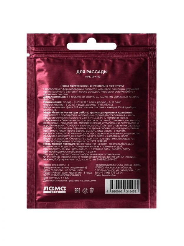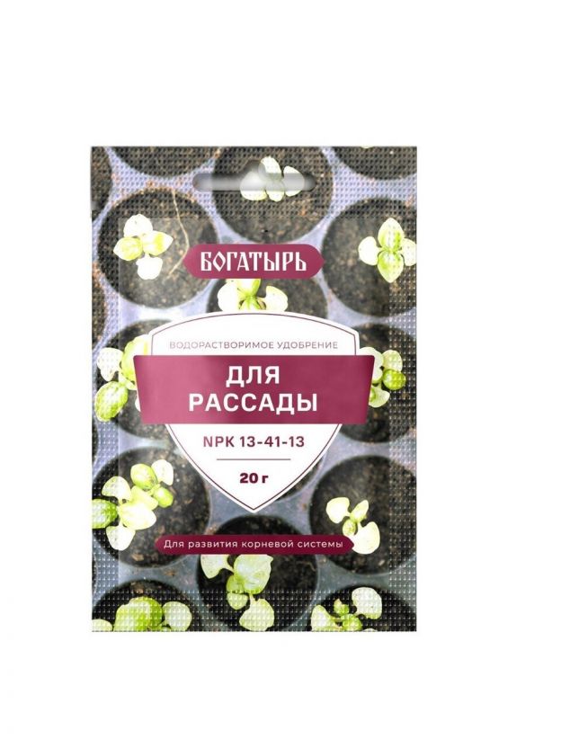 Удобрение Богатырь, для рассады, водорастворимое, 20 г, Лама Торф