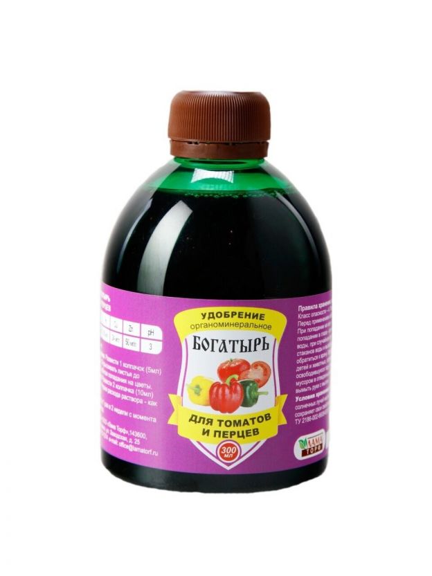 Удобрение Богатырь, для томатов и перцев, органоминеральное, 300 мл, Лама Торф