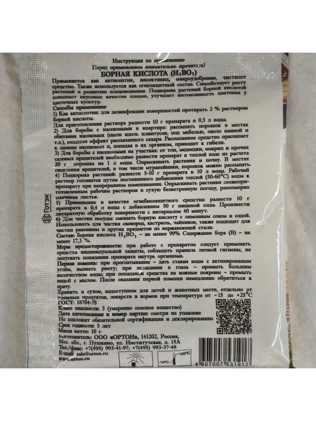 Удобрение Борная кислота, 10 г, Ортон
