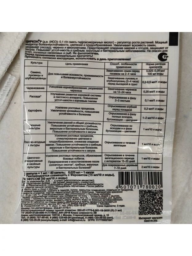 Корнеобразователь, индуктор цветения и плодоношения «Циркон» является препаратом широкого спектра действия, обладающим мощным фунгицидным и антистрессовым действием. Он изготовлен из природного сырья, поэтому не может нанести вред как растениям, так и окружающей среде. Средство способствует нормализации гомеостаза, защищает сельскохозяйственные культуры от загрязнения тяжелыми металлами, засухи и вредного УФ-излучения. Купить это средство можно для замачивания семян перед посадкой и опрыскивания вегетирующих растений.
