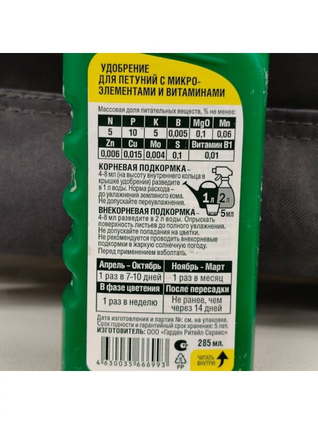 Позаботьтесь о своих петуниях с удобрением "Цветочное Счастье" от бренда Фаско. Это минеральное удобрение в жидкой форме объемом 285 мл станет идеальным помощником для роста и цветения ваших растений в любое время года.