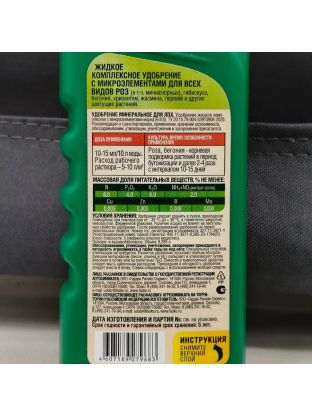 Специализированное комплексное жидкое удобрение с микроэлементами. Содержит сбалансированный набор питательных веществ необходимых для активного роста растений.