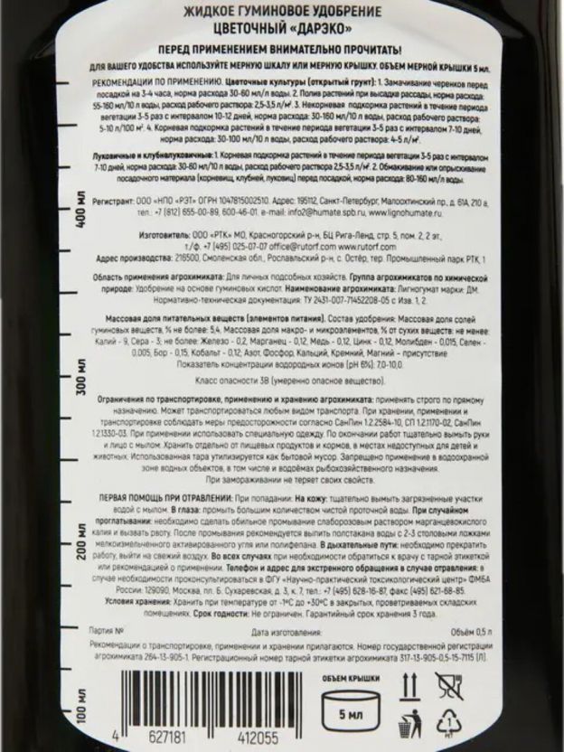 Как использовать удобрение ДАРэко? Просто добавьте нужное количество в воду для полива согласно инструкции. Подходит ли для орхидей, роз, фиалок? Да, состав универсален и безопасен для всех типов цветочных культур, включая капризные виды. Продукт сертифицирован и рекомендован для применения в любое время года, что особенно удобно для круглогодичного ухода за растениями.