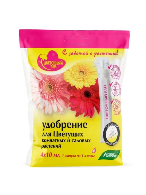Удобрение Цветочный рай, для цветущих растений, 4 шт, ампулы, 10 мл, БХЗ
