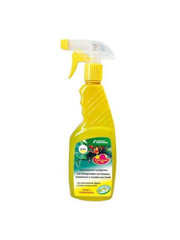 Представляем удобрение "Цветочный рай" от Буйского химического завода — идеальное решение для декоративно-лиственных растений! Это минеральное удобрение в форме спрея обеспечивает активный рост и защиту от болезней круглый год. Объем 500 мл позволяет долго наслаждаться здоровьем и красотой растений.