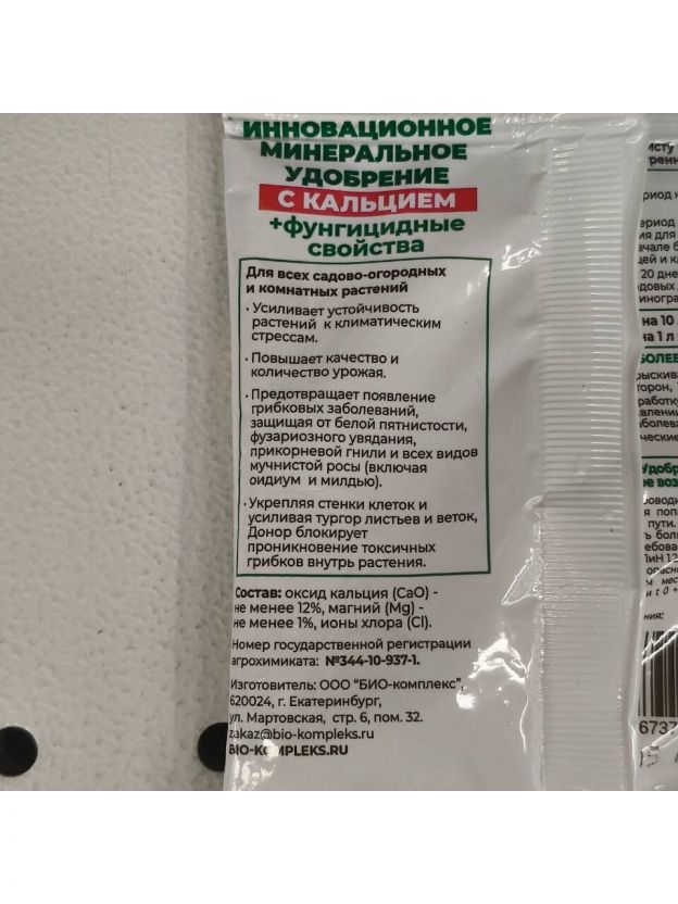 Донор - инновационный препарат, сочетающий свойства минерального кальциевого-магниевого удобрения и фунгицида (защита от грибковых заболеваний). Подходит для всех видов растений: комнатные и балконные цветы, садовые и огородные культуры открытого грунта и теплиц.