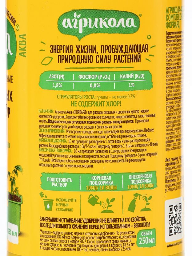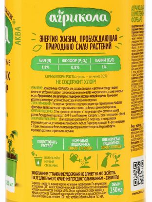 Удобрение жидкое Форвард Агрикола Аква 250 мл — быстрый рост и здоровая зелень для ваших растений без лишних хлопот и переплат.
