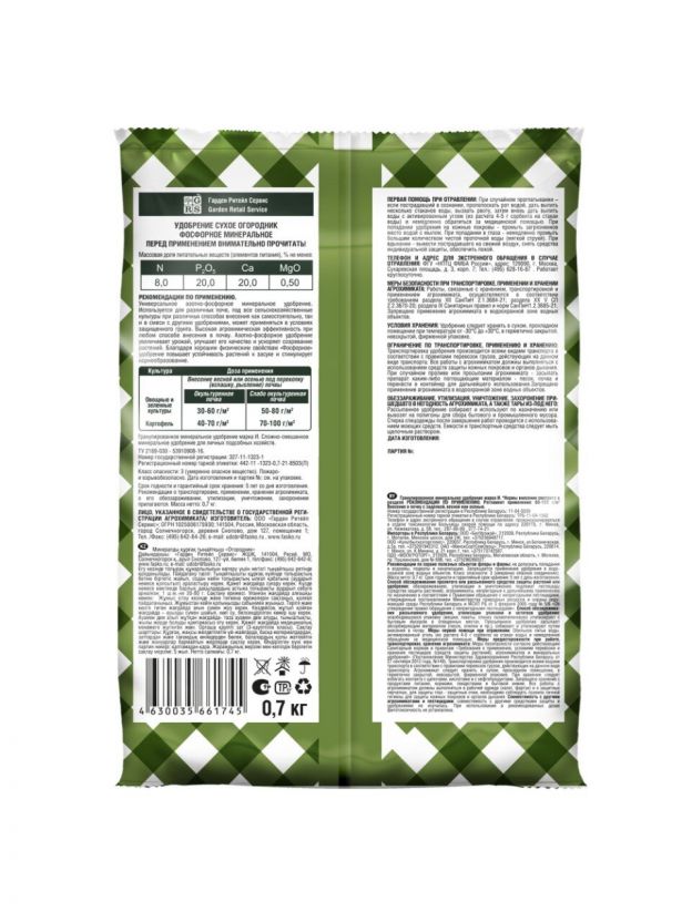 Фосфорное минеральное удобрение Огородник, 700 г — ускоренный рост и обильное цветение для вашего огорода, защита от болезней, оптимальный расход!