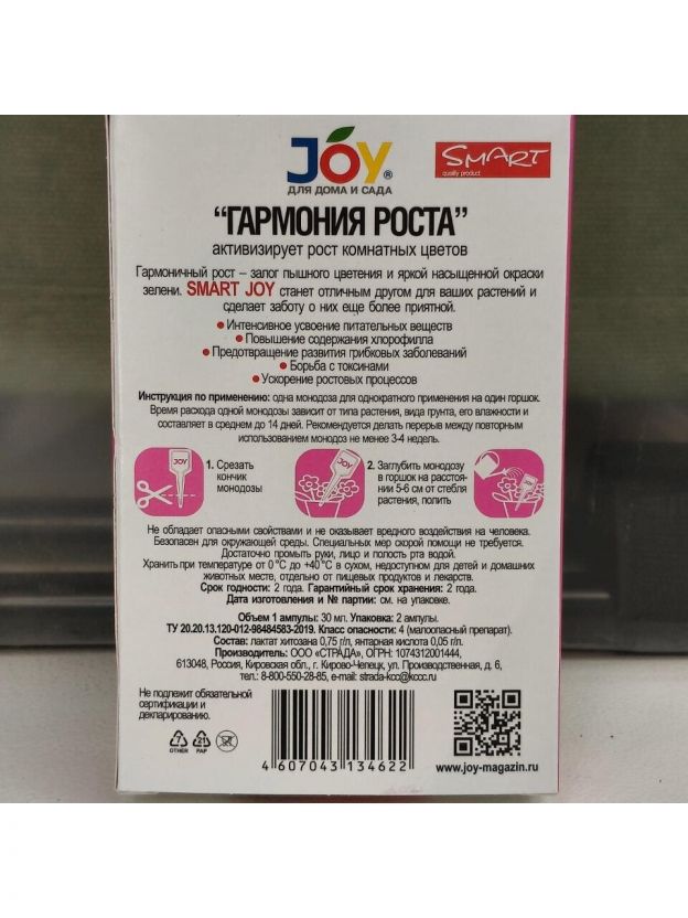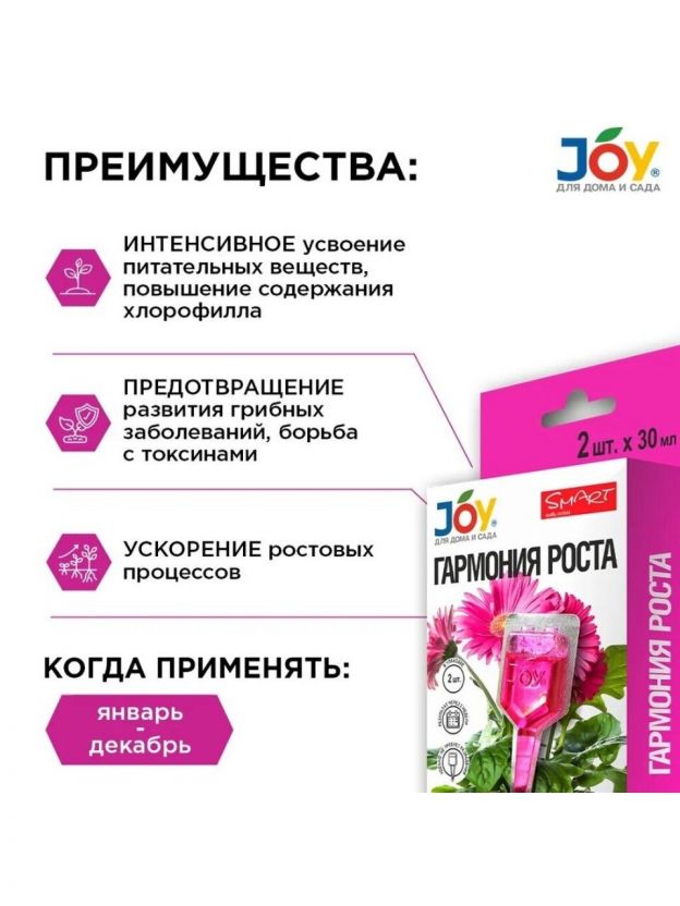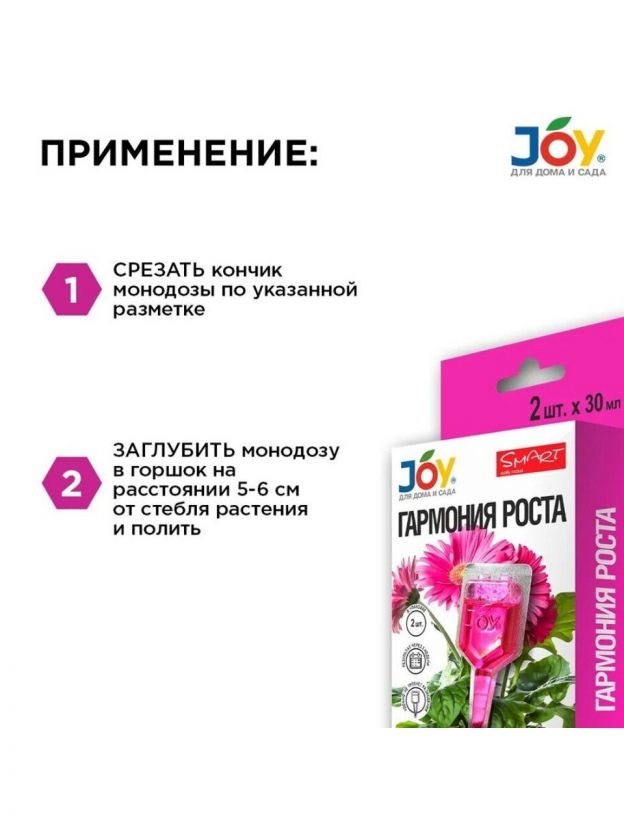Удобрение Гармония роста, для комнатных цветов, 2 штуки, 30 мл, Joy