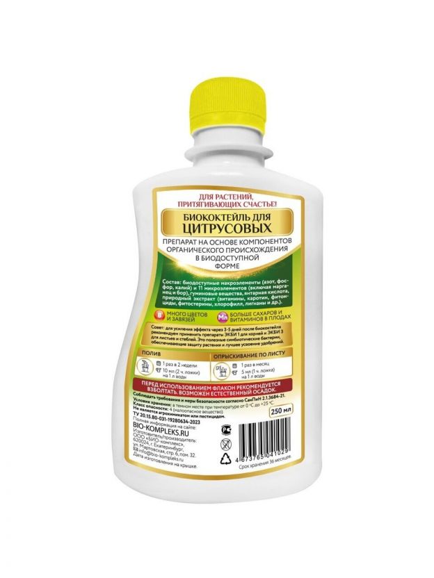 Откройте для себя идеальное решение для ухода за цитрусовыми растениями с удобрением Happy! Этот биококтейль от бренда Био-комплекс создан для обеспечения полноценного питания и укрепления цитрусовых культур.