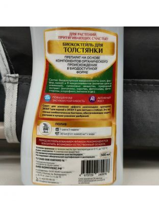 Представляем Удобрение Happy, биококтейль для толстянки — идеальный выбор для тех, кто стремится обеспечить своим растениям здоровый и активный рост. Это минеральное удобрение в форме жидкости объемом 500 мл от бренда Био-комплекс создано специально для толстянки, популярного комнатного растения. Удобрение произведено в России и отвечает высоким стандартам качества.