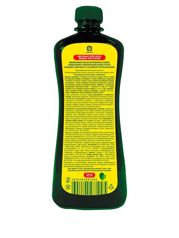 Зарекомендовавшее себя на рынке универсальное жидкое натуральное удобрение. Содержание водорастворимых гуминовых кислот и основных питательных элементов (азот, фосфор, калий и др.) обеспечивают высокую эффективность удобрения. Содержащиеся в составе гуминовые кислоты являются естественными стимуляторами роста растений.