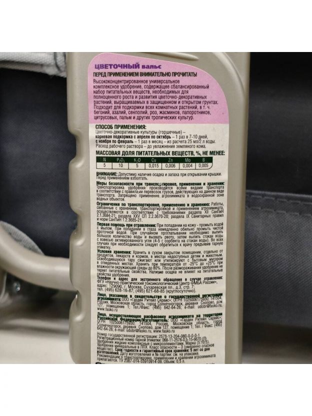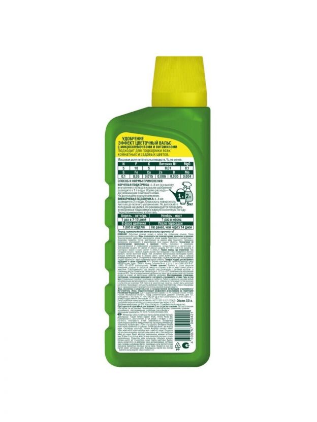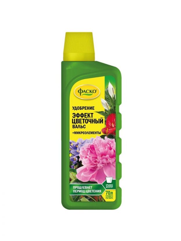 Удобрение жидкое Фаско Эффект Цветочный вальс является сбалансированной добавкой, используемой для подкормки всех комнатных растений.