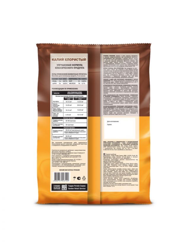 - Комплексное действие: калий хлористый с микроэлементами усиливает устойчивость и ускоряет рост растений