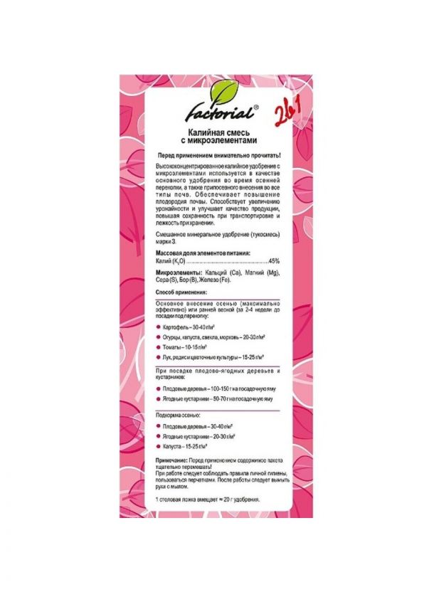 Удобрение Калийная смесь, с микроэлементами, минеральное, гранулы, 2.5 кг, Factorial